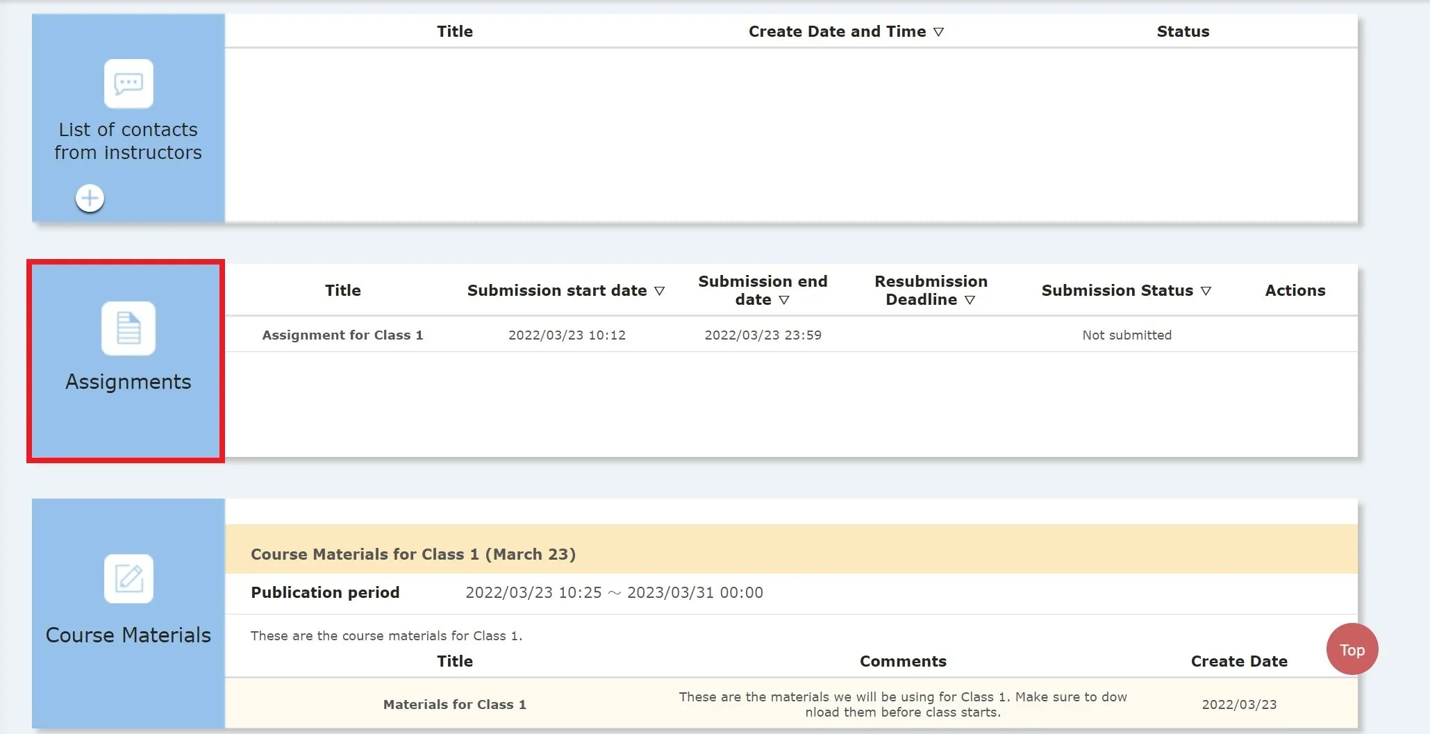 For example, by using LMS to manage tests and assignments, you can easily set submission deadlines and inform students of them, and can provide them to students in an easy-to-read format. Other advantages include the ability to significantly reduce administrative work by eliminating the need to distribute materials to students who have lost their handouts or were absent, the ease of managing reaction papers in large classes, and the ability to assign online discussions to students for learning outside of class.
