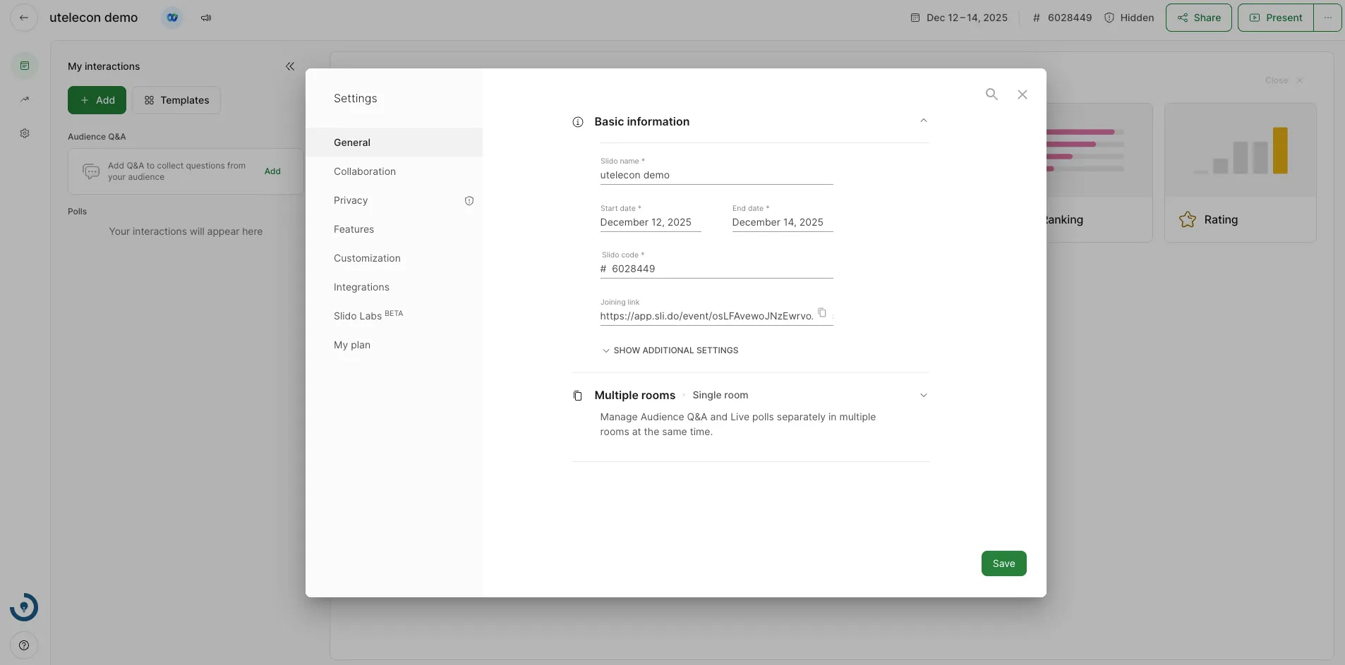 - Hidden from search: Users can prevent the site from showing up in search results, such as Google. It is recommended to turn this on when Slido is used in class.