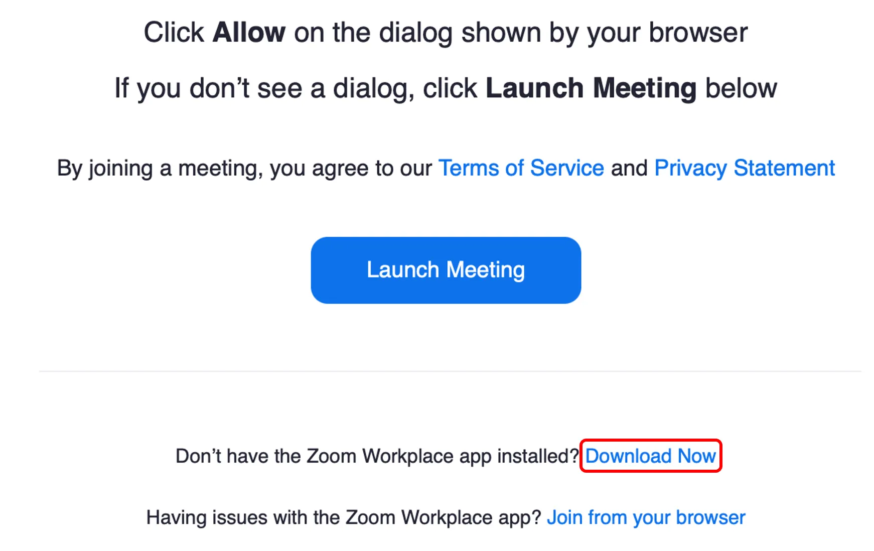 - When the Zoom app is not installed, the files you need are downloaded automatically. If it is not downloaded, the following screen appears and you can download them by pressing “Download Now”.
