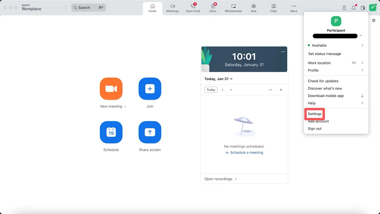 - Click the icon in the upper-right corner of the Zoom app window and select “Settings”.
