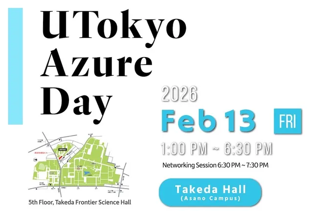 本イベントは,UTokyo Azureに関心をお持ちの方が気軽に参加できる学内ネットワーキングイベントです. クラウド活用の第一歩を踏み出したい方から,すでに導入されている方まで,どなたでも歓迎します. ポスター発表も募集中ですので,ぜひご検討ください!