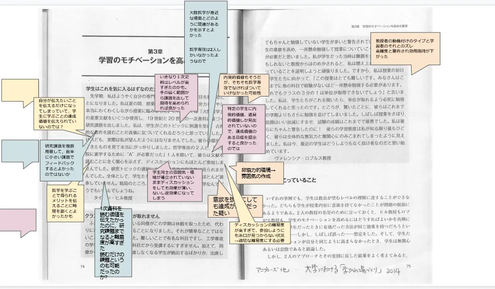 よりよいティーチングについて学ぶため、『大学における「学びの場づくり」-よりよいティーチングのための7つの原理』(玉川大学出版部)を題材にして教え方の原理を丁寧に理解していきます。「ティーチングのため」に紹介されている原理ですが、社会において人に何かを伝え理解してもらうという機会は誰もが持ちうるものです。また、これは学習者側にとっても役に立つ原理です。各原理について、紹介事例について考え、研究知見を理解し、自分なりの行動指針として昇華していくという方法で学びます。