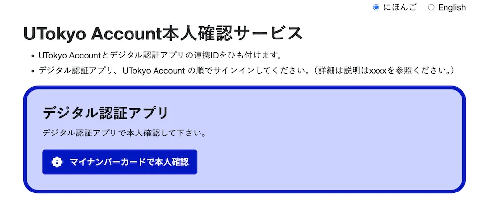 - UTokyo Account本人確認サービスにアクセスしてください.